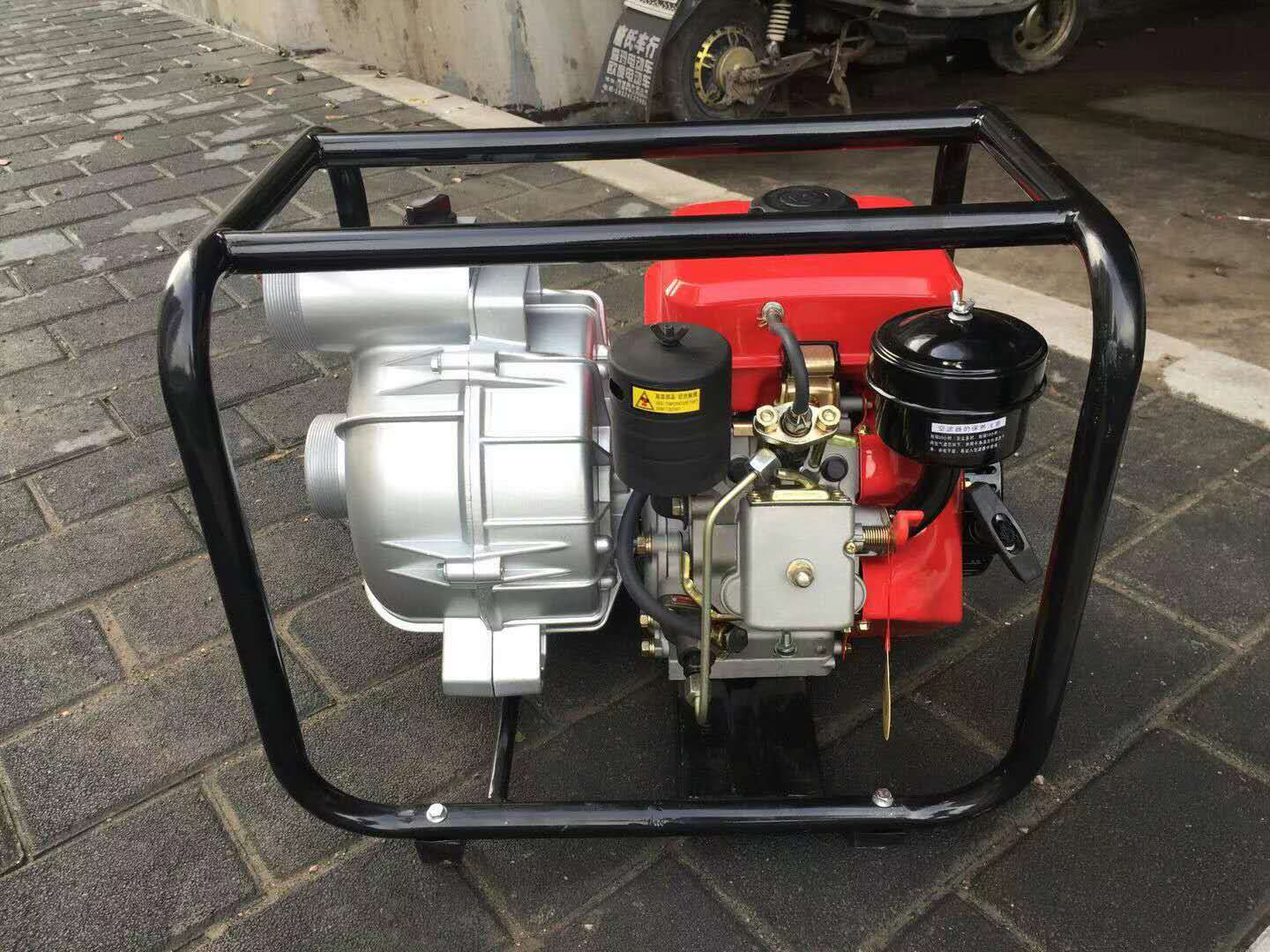 汽油机水泵是一种离心泵。离心泵的工作原理就是在泵内充满水的情况下,发动机带动叶轮,从而产生离心力,叶轮槽道中的水在离心力的作用下甩向流进泵壳,于是叶轮中心压力,这个压力低于进水管内压力,水就在这个压力差的作用下由吸水池流入叶轮。这样水泵就可以不断地吸水不断地供水了。主要用途:农业排灌,工业排水等装置。