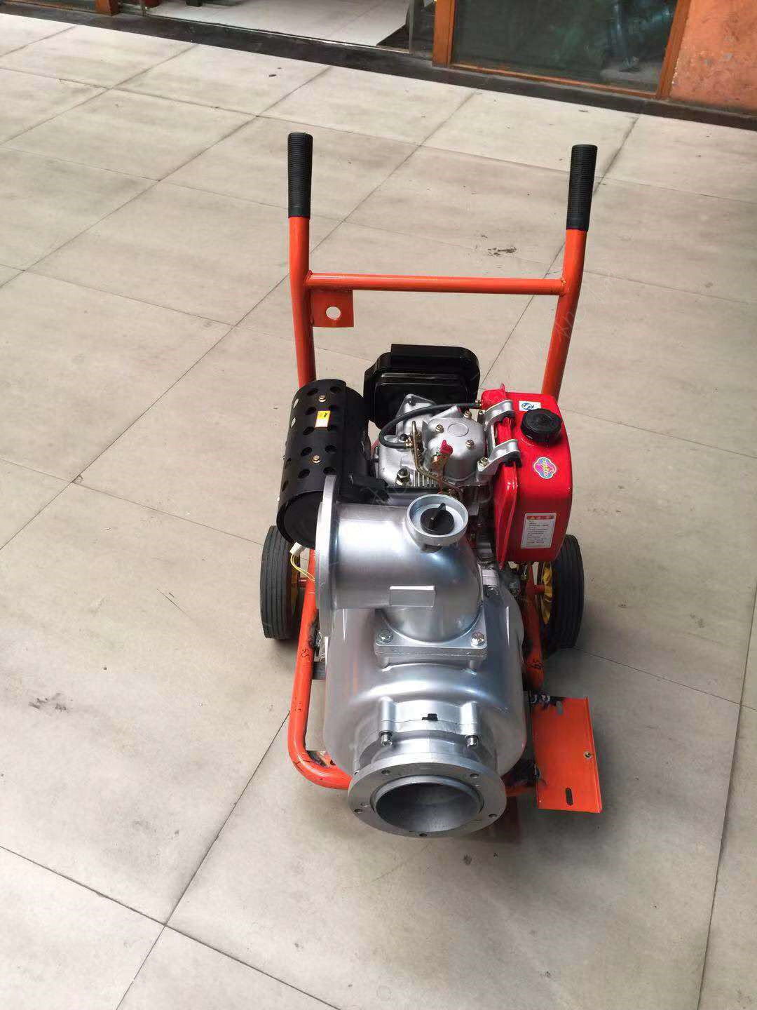 汽油机水泵是一种离心泵。离心泵的工作原理就是在泵内充满水的情况下,发动机带动叶轮,从而产生离心力,叶轮槽道中的水在离心力的作用下甩向流进泵壳,于是叶轮中心压力,这个压力低于进水管内压力,水就在这个压力差的作用下由吸水池流入叶轮。这样水泵就可以不断地吸水不断地供水了。主要用途:农业排灌,工业排水等装置。
