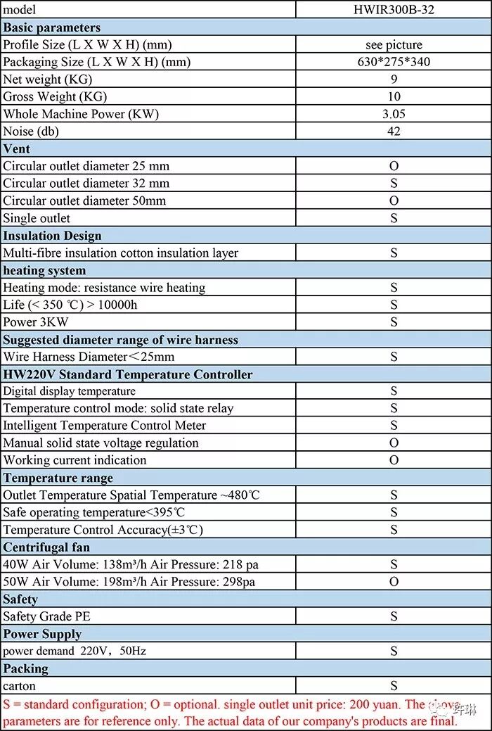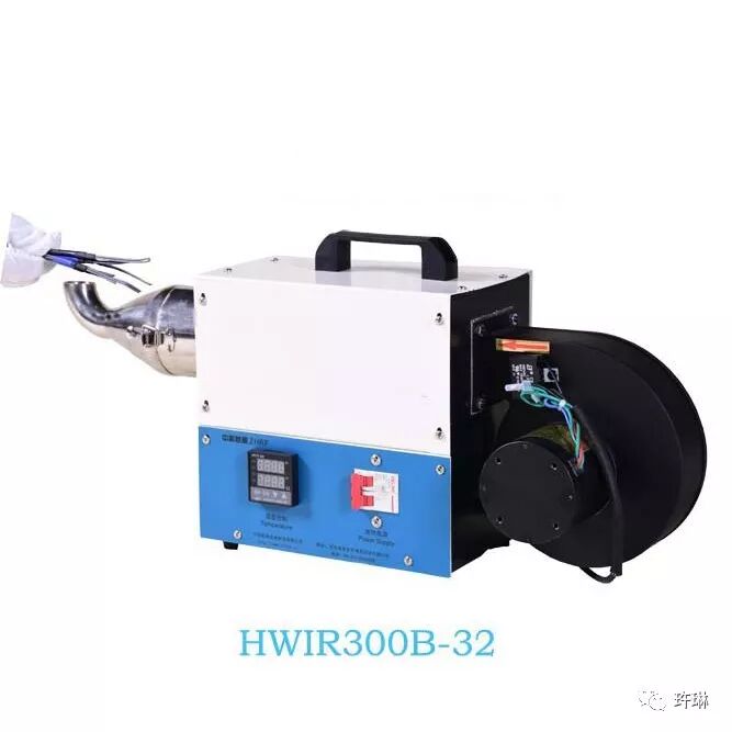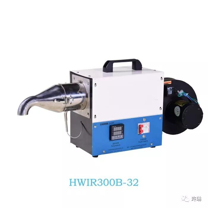 HWIR300B-32 heat shrinkable tube heating machine is suitable for shrinkage of PE heat shrinkable tube, PVC heat shrinkable tube, double wall heat shrinkable tube with glue and so on.It can be installed on the assembly line.It can adjust the temperature according to the production process requirements and control the temperature accurately.The shrinkage time is short, suitable for any size of heat shrinkable tube. It is small in size, light in weight and easy to move. The thermal efficiency is high and durable. It can be used for heating just starting, and can work continuously for 24 hours without interruption.