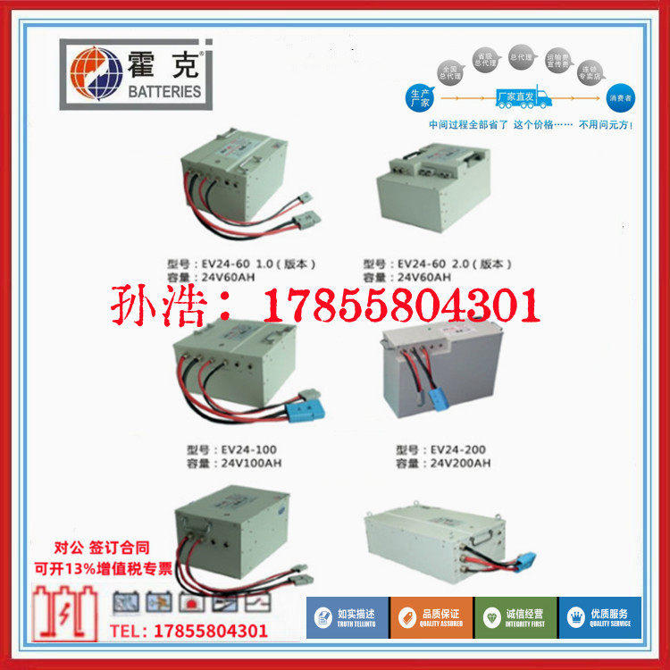 霍克铁锂动力电池的充电口与放电口隔离,具有意义的充、放电异口的功能。24V铁锂电池正常充电时的充电电压应为29.2V,低于此充电电压,会降低充电效率,延长充电时间。霍克电池无论加在充电口的充电电压有多高,EV24-60电池的放电口输出电压都被限制不高于26.2V。这个功能避免了充电机较高的充电电压直接加到负载直流电机上,而损毁电机。