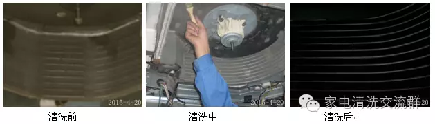 2.翅片有较重污垢在确保人身安全的情况下先用适量清洗机喷覆浸润,待发泡后用水枪冲洗