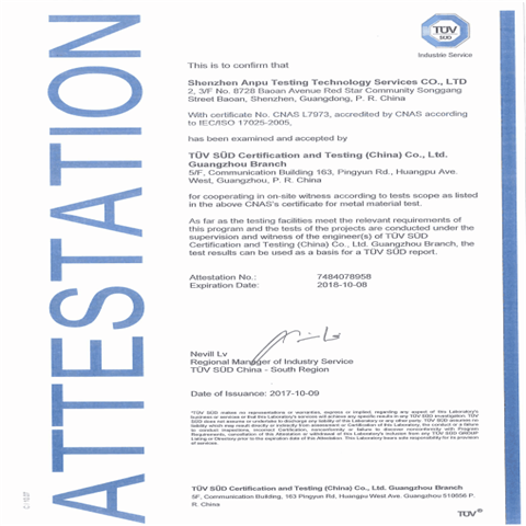 佛山铝合金成分检测 拉伸试验哪家强?TUV实验室,认准安普